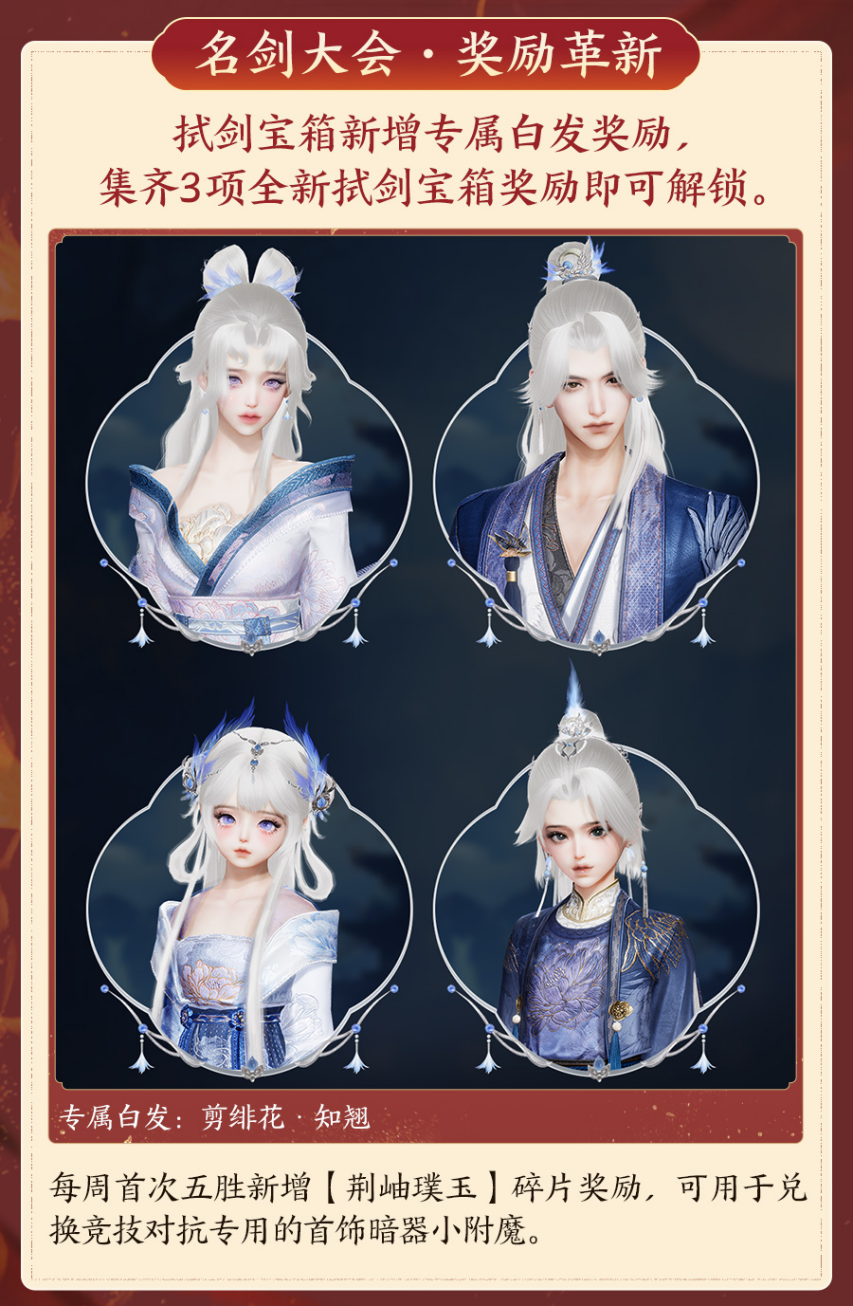 名剑大会作为PVP最具内核的玩法,除了进一步调整匹配机制,并对2V2模式里的拉锯式的长时对局做一些限制之类的玩法上的调整,我们还将在原本的名剑套装和战阶套装的基础上,对PVP的装备与附魔进行一轮过渡性的优化。通过这些方式的组合,我们希望名剑大会能够在投入成本和玩法收益上成正比,保证大家体验的同时,让名剑大会回归PVP的顶级追求。