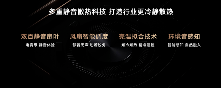同时,产品采用全新荣耀智静散热设计,配备行业领先12mm大直径复合3D隧道式热管、12V电竞级双百叶静音风扇、相变导热材料、0.075mm超薄纯铜散热鳍片等散热组件,搭配风扇智能调度、壳温拟合以及环境音感知等技术,打造行业更冷更静的散热体验。12mm3D12V0.075mm