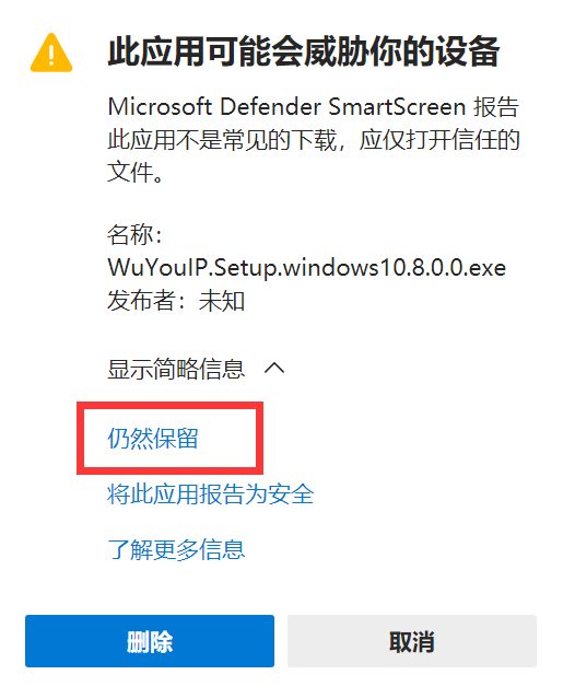 如果是Windows10默认浏览器会提示风险,需要以下操作